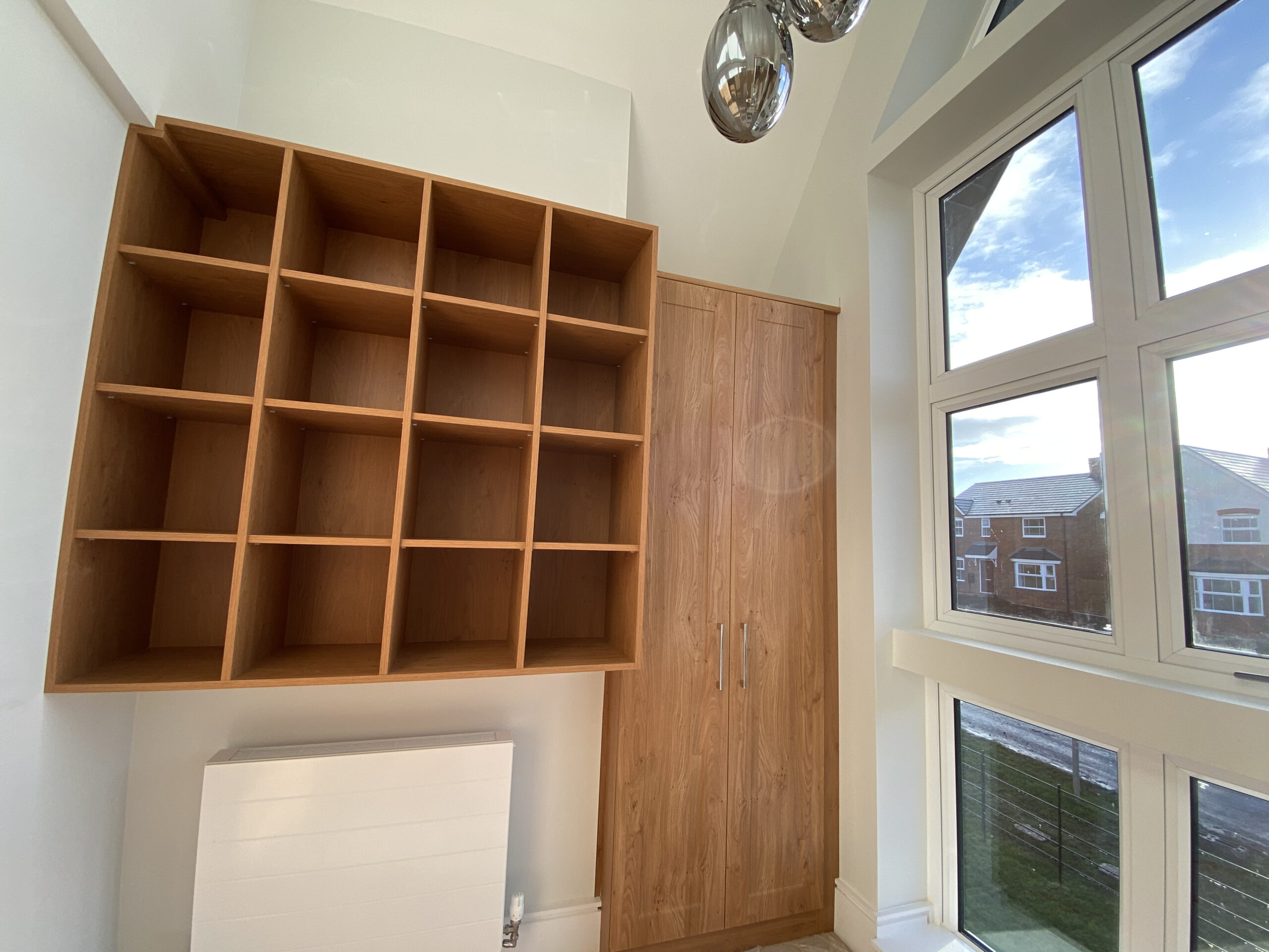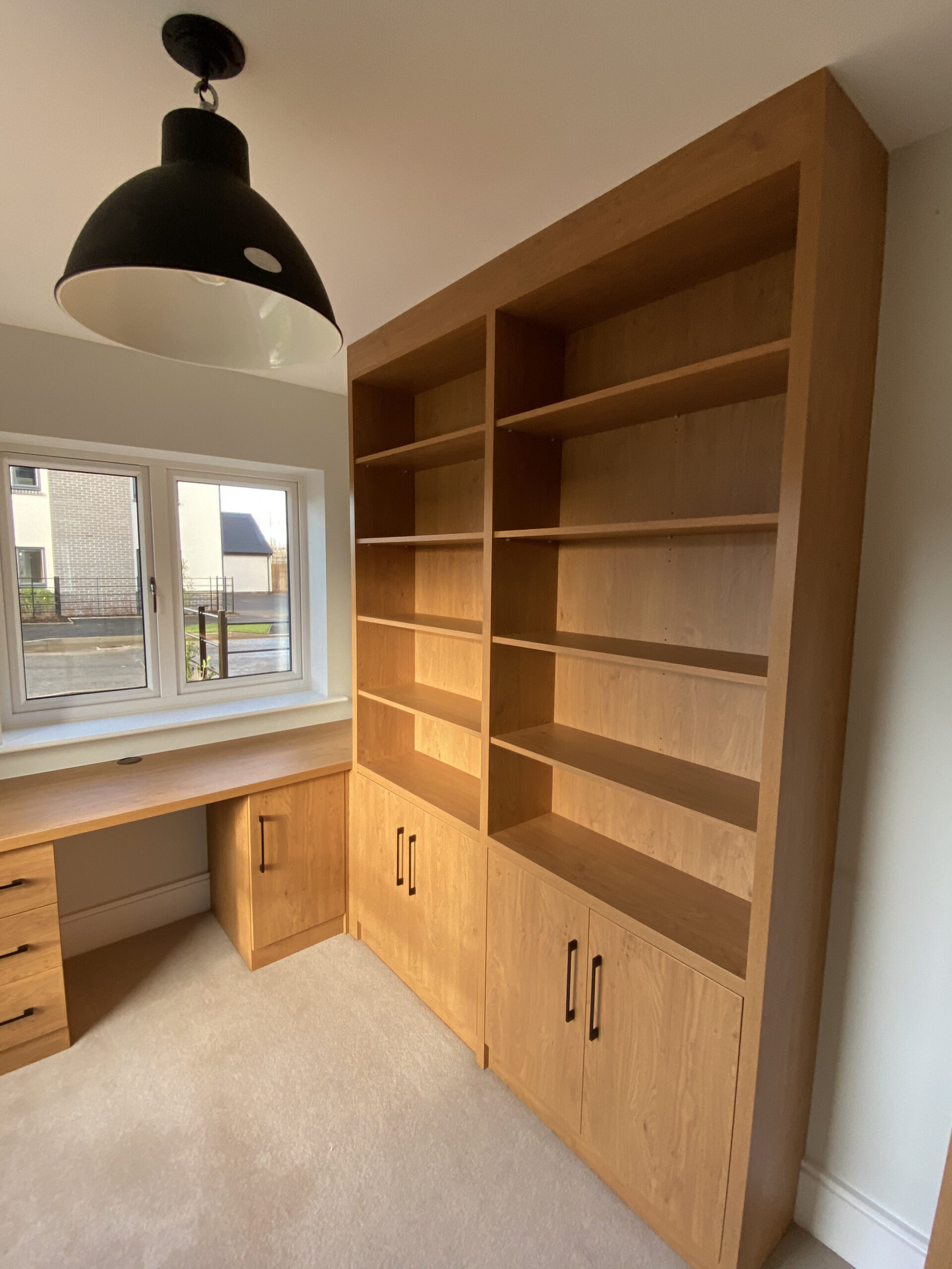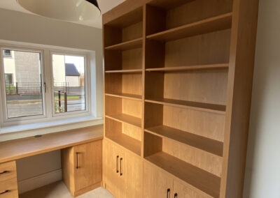 Oak laminate was the material and finish of choice for the home office and we think it looks stylish and of course it’s functional with plenty of storage.