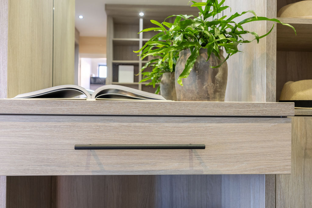 Our walk in wardrobe system is constructed with 36mm upright divisions, and is designed specifically to allow easier access to your clothes, complimented by pull out shoe trays, drawer and shelving systems. Our closets system is also designed to accommodate the most challenging shaped rooms.